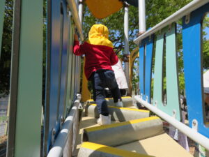 1歳児のお友だちも大きな階段を自分の力で登っていきます!!