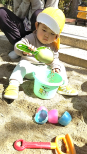 “たんたんたんたんたんじょうび~♪”お砂でケーキ作り( ^ω^ )