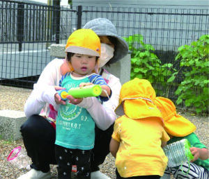 戸外活動では水鉄砲に夢中になる子どもたちの姿も☆