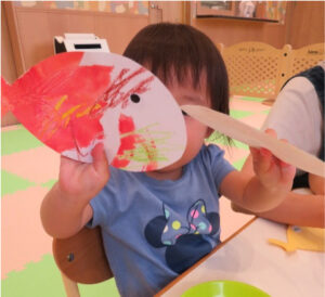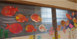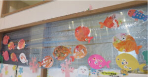 皆の作ったお魚、玄関で気持ちよさそうに泳いでいます☆
