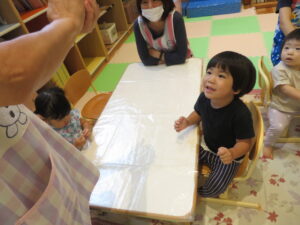 「こぐまちゃんのホットケーキ」の絵本を読んだあとだったのでみんな興味深々!!