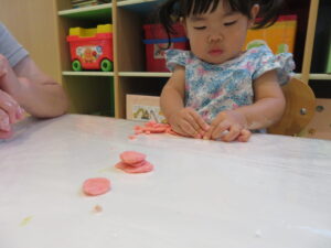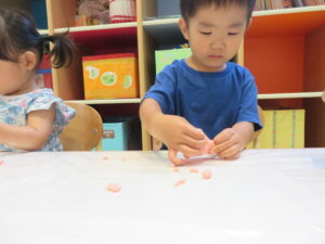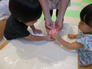完成した小麦粘土を触ってみます♪