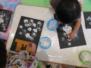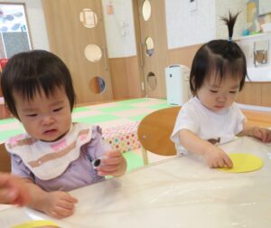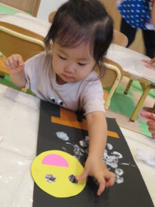 ほし組(0歳児クラス)さんも、器用に指先を使って貼り付けていましたよ^^