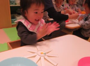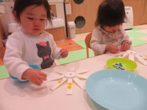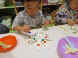 2・3枚貼って「できたー!!」と満足の子、どこまでも貼り続ける子など