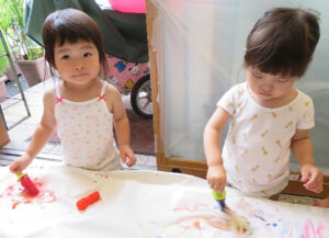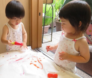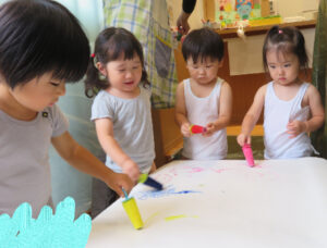 「せんせいみてー!」と2つの色を混ぜて色が変わる様子を愉しんだり、