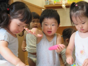 「うわぁ~!きれいだね~!」「つぎきいろにする!」「せんせいもいっしょにしよー!」など、