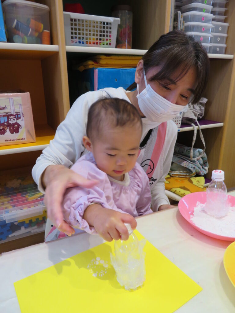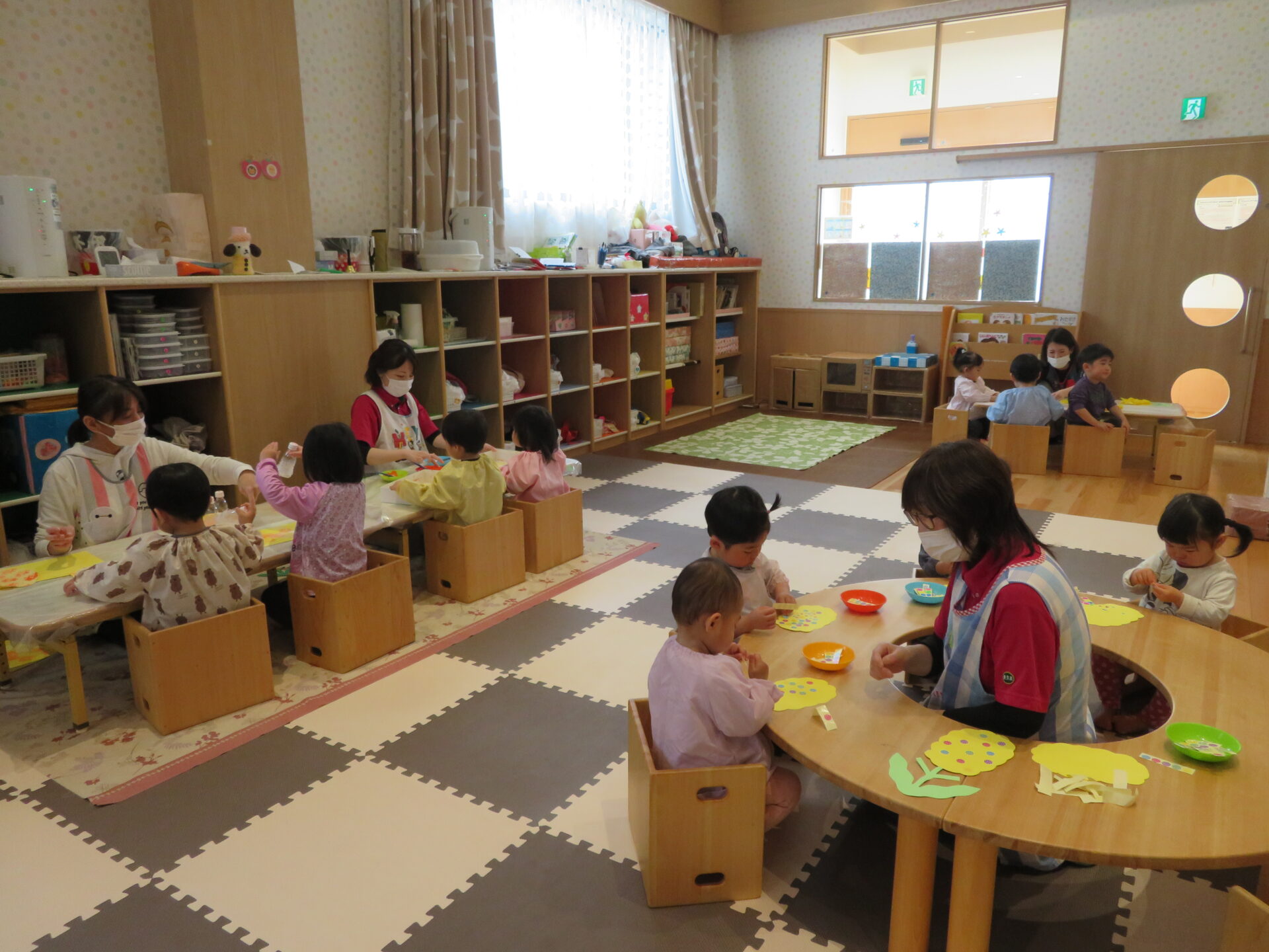 いつもは一つの技法で製作を楽しんでいますが、この日は4種類の製作を用意していたので、ほとんどの子が全部のコーナーを楽しんでいましたよ。