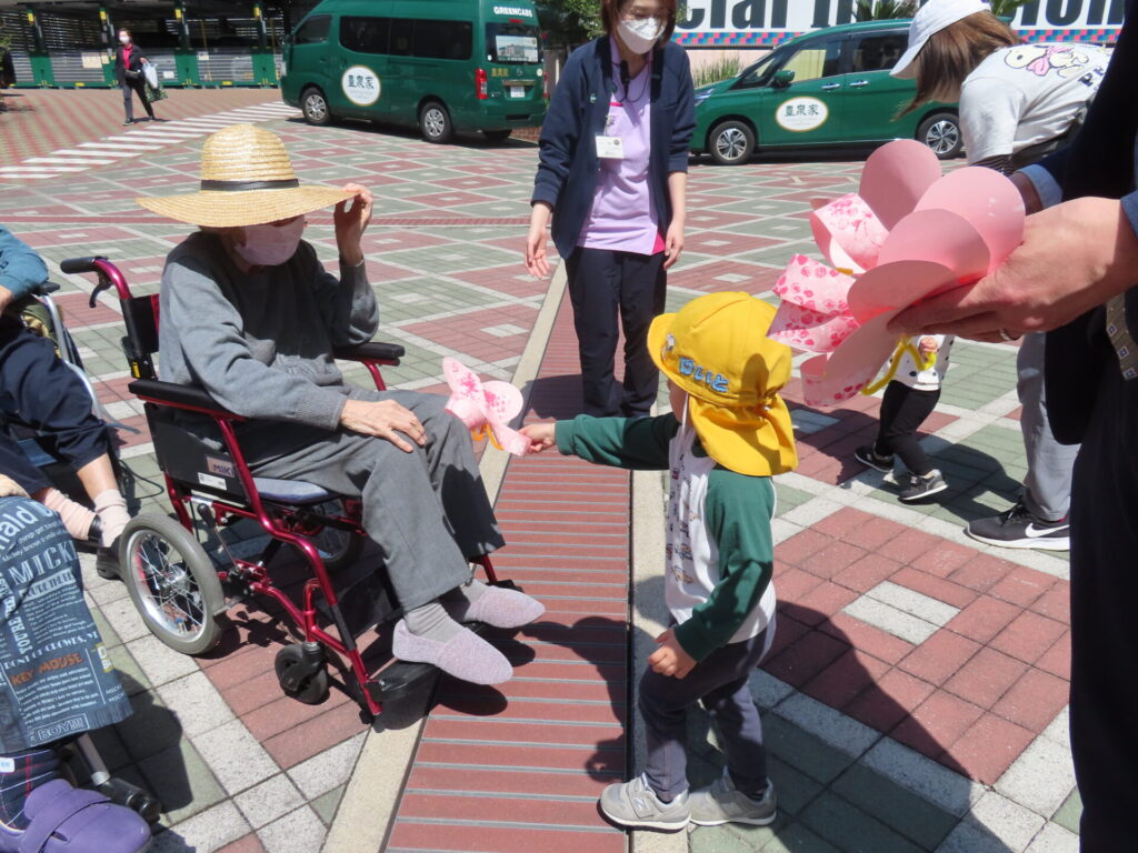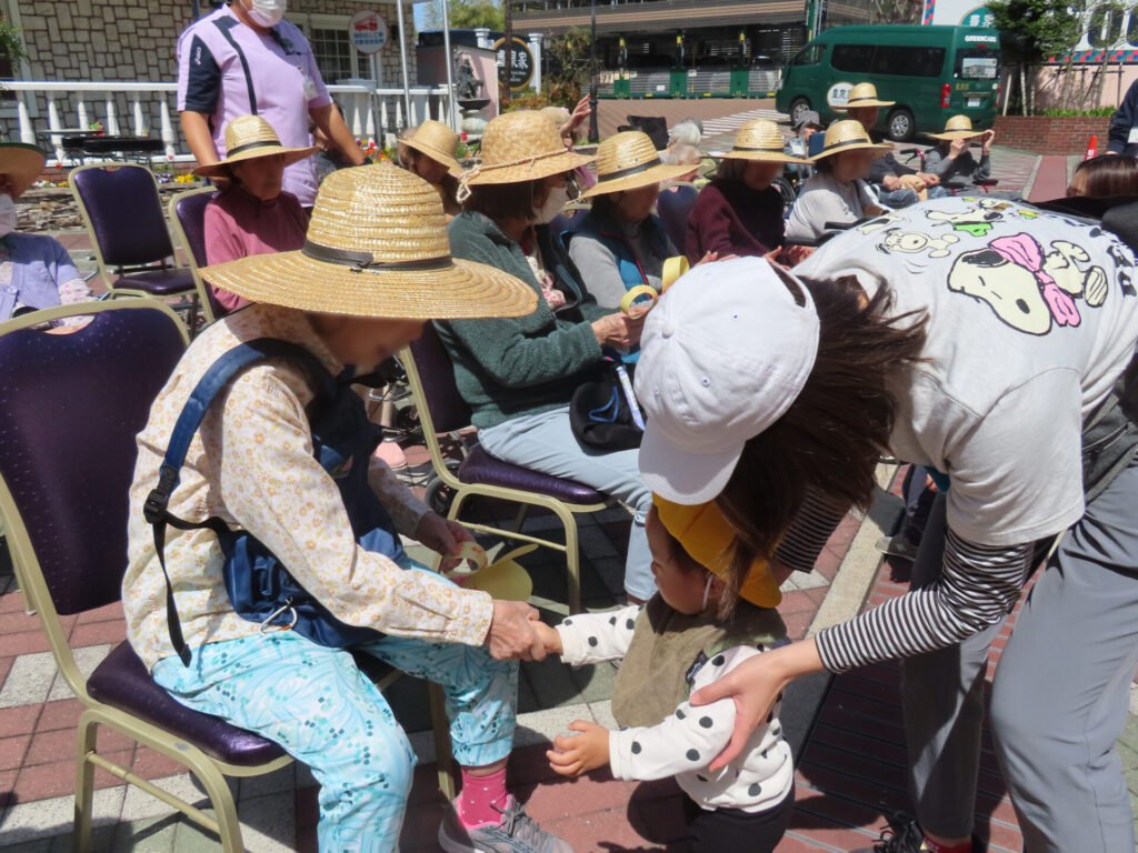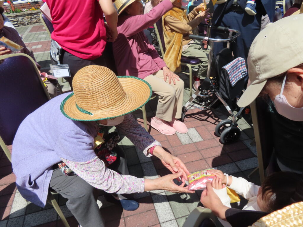 「ありがとう」としっかりお礼を言う子もいれば、おじいちゃんおばあちゃんと握手やタッチをして触れ合い、喜びを伝える子も^_^