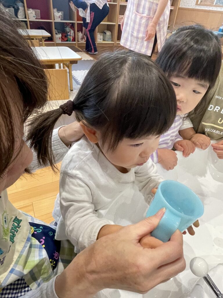 初めての子は少し難しい様子で、中にはそのままゴックンと飲み込んでしまう子も(^^;)